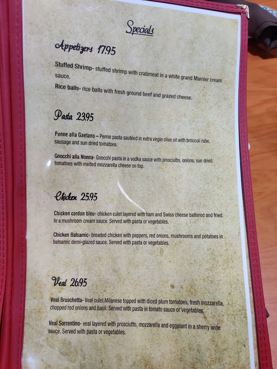 The menu offers an array of delectable dishes, including the mouthwatering veal Parm and creamy gnocchi with vodka sauce, all complemented by fresh homemade bread. Start your meal with their unforgettable hot antipasto and savor the generously portioned entrées that leave you feeling satisfied and content.
